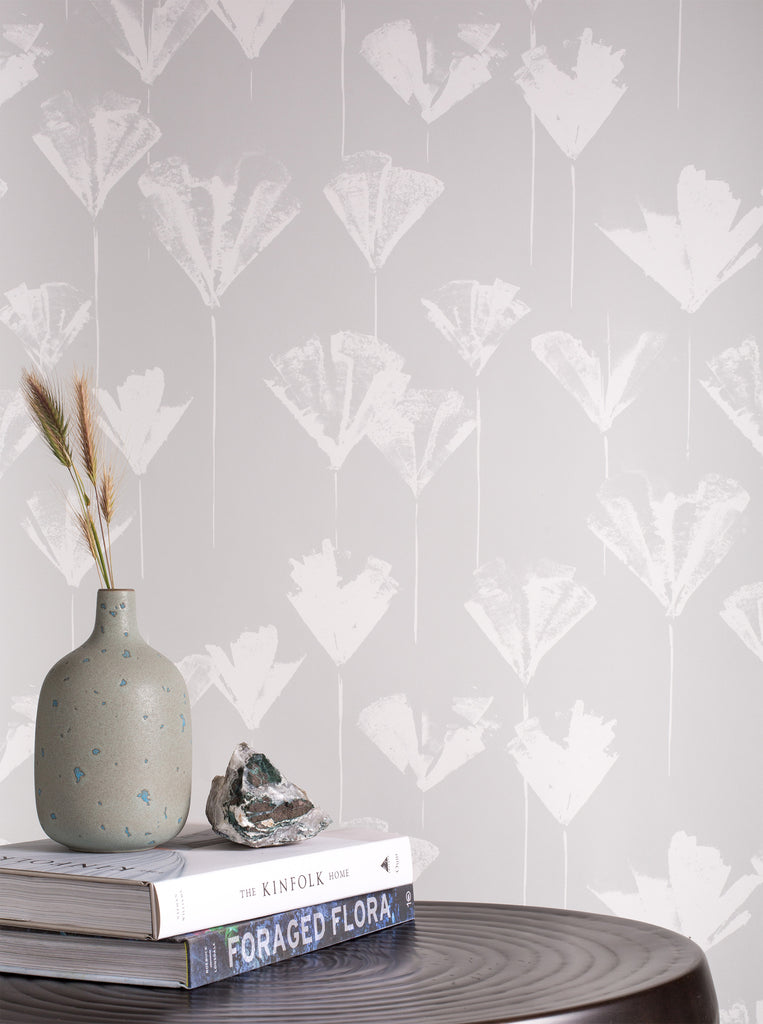 The artist designed the painterly, abstract Botanica with the California poppy in mind. She created a series of floral motifs by dipping an art blade in ink, then creating layered petals with one hand and spraying water onto the paper with the other. The ink and water interact differently each time, capturing a unique expression of movement and fluidity in each motif.