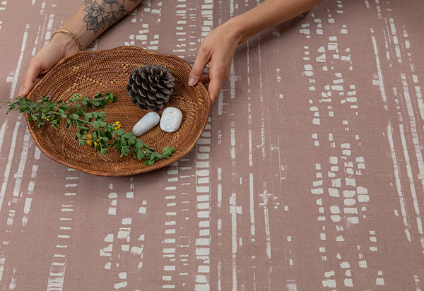 Fabric is sourced from Belgium and printed in the USA using water based pigment inks in a low VOC process.